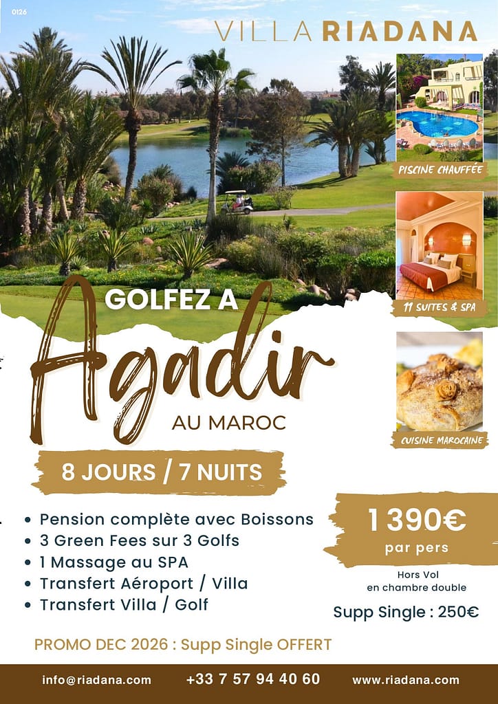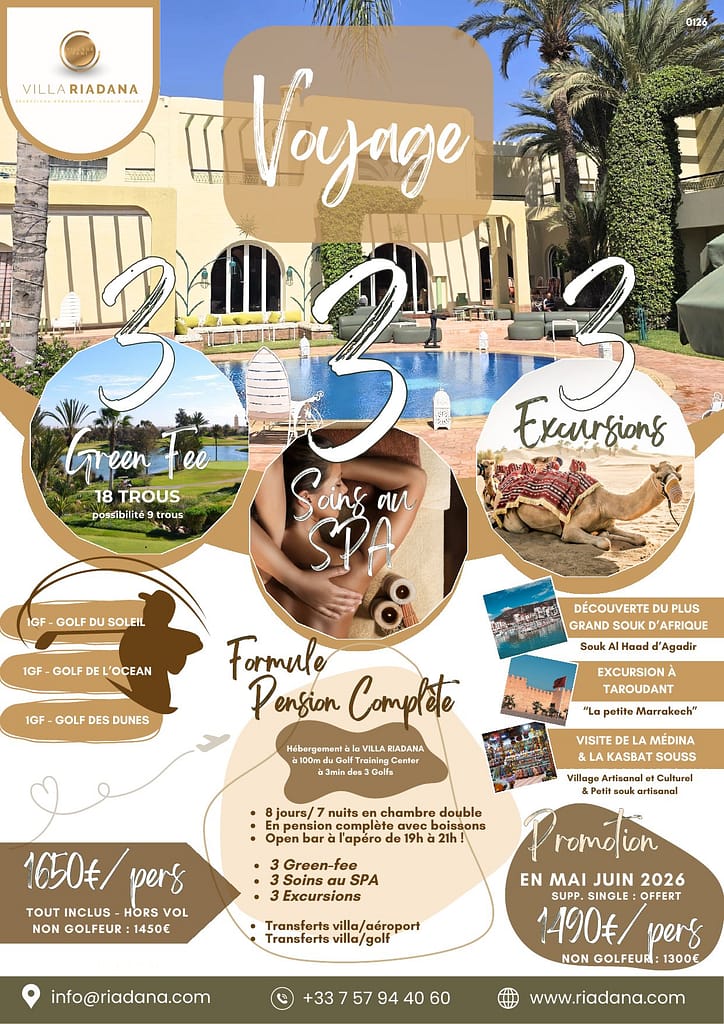 Oui, nous proposons un forfait golf senior avec 3 green fees et des sorties découverte d'Agadir.